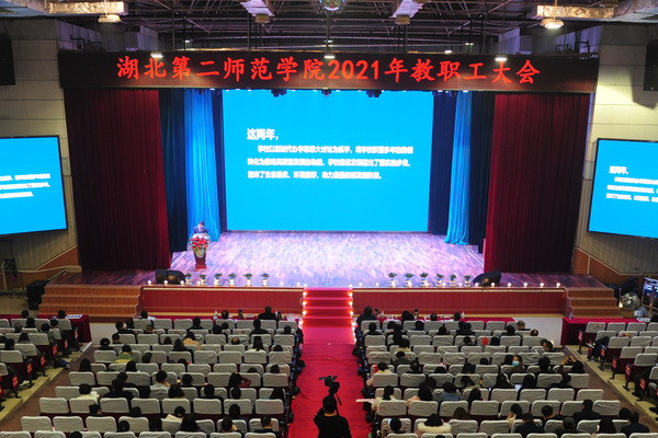 本网讯(融媒体记者 程丽鹃 见习记者 杨新越)3月18日下午,学校在大礼堂举行2021年教职工大会,对过去两年工作进行总结表彰,对2021年重点工作进行部署。全体校领导、教职工参加大会。会议由党委副书记许邦官主持。