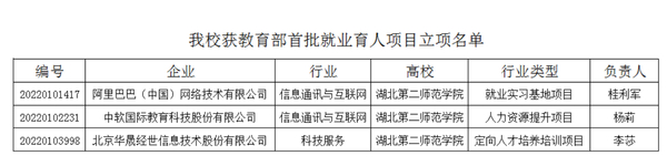 本网讯(通讯员 淡珊)近日,教育部发布了《教育部高校学生司关于公布第一期供需对接就业育人项目立项名单的通知》,我校共有3个项目成功入选首批供需对接就业育人项目名单。