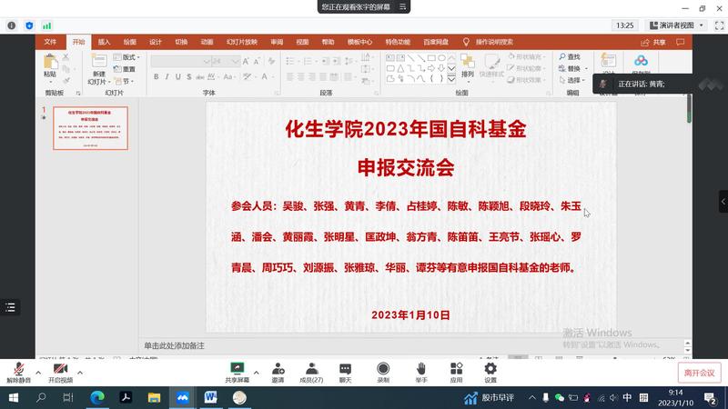为做好2023年度国家自然科学基金组织申报工作,进一步提高基金申报质量和水平。1月10日上午,化生学院举行国家基金申报工作线上交流会。学院院长曾国平教授、教师代表以及基金拟申报老师参加会议。化生学院副院长张宇主持会议。