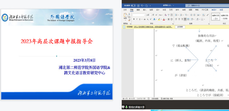 (通讯员:尹雪扬)2023年3月8日19:00点,外国语学院华中师范大学外国语学院教授、湖北第二师范学院外国语学院特聘教授李俄宪应邀参加外国语学院高层次课题申报交流会,对学院申报2023年度教育部人文社科课题的两位教师进行课题申报指导。会议以腾讯会议方式开展,学院党委书记胡崇芝、院长刘晖出席,会议由副院长唐植君主持。
