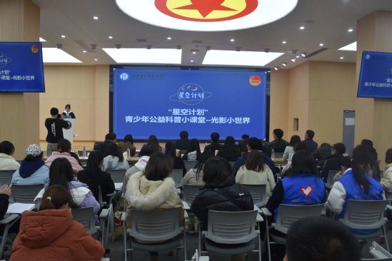 会上,七所入围省级示范课程的高校依次进行交流分享。我校物理与机电工程学院“星空计划”团队负责人芶婧怡,详细介绍了“星空计划”公益科普小课堂。从设计背景、课程特色到社会影响,全方位展现出这一科普课程的独特魅力与教育价值。