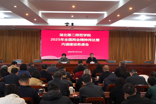 本网讯(通讯员 廖航)3月11日下午,学校在行政楼五号会议室召开2025年全国两会精神传达暨内涵建设务虚会。住鄂全国政协委员、我校校长郑军传达习近平总书记在全国两会期间的重要讲话精神和两会精神,全体校领导、中层干部参加学习,会议由校党委书记杨鲜兰主持。