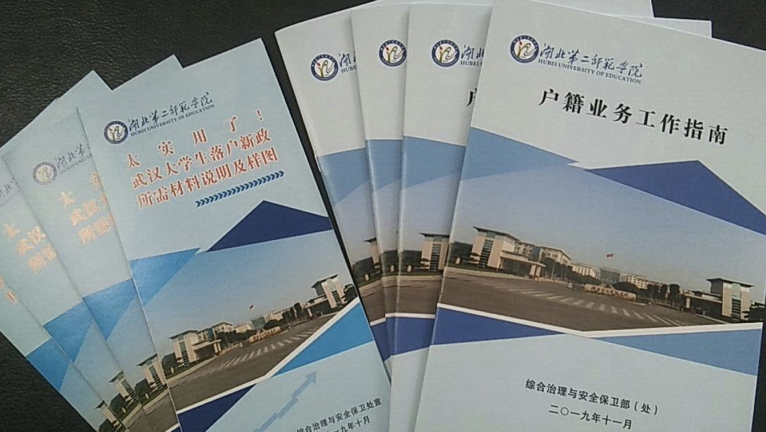 在同心所俞明哲警官的指导下编印《湖北第二师范学院户籍业务工作指南》、《武汉大学生落户新政所需材料说明及样图》等专门的宣传材料,并已送达到各学院及人事处、学工部等部门;