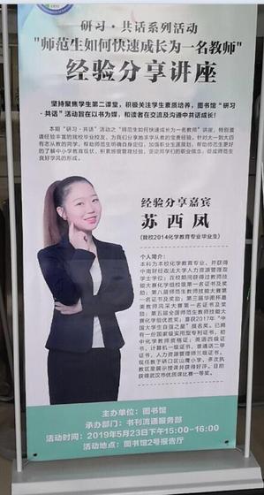 苏西凤同学成长经历给了希望从事教师工作的同学们一个更加清晰合理的定位,有利于同学们进一步转变就业观念,为同学们未来的职业规划提供了有益的参考。