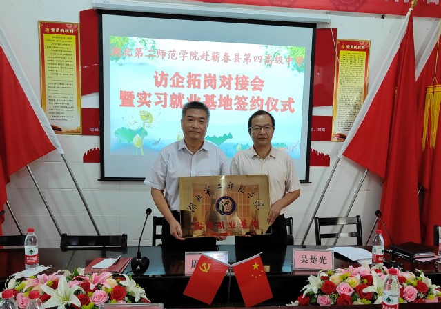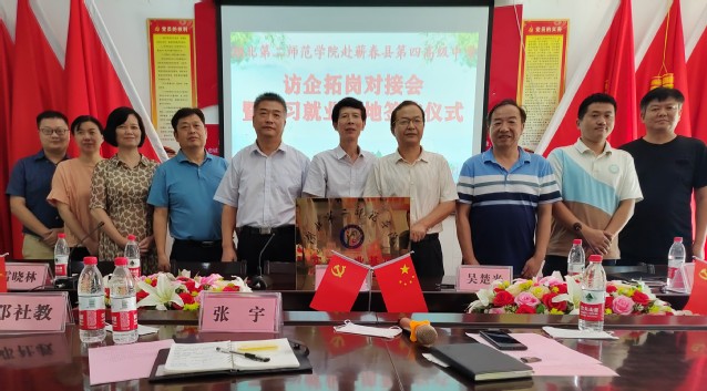 (通讯员张宇雷晓林)7月26日,校党委常委周忠带领化学与生命科学学院相关人员赴蕲春县李时珍中学和蕲春四中开展访企拓岗促就业活动。此次活动由蕲春县教育局统筹组织,教育局党组副书记李泓主持了两场交流会及教育实习就业基地签约仪式。蕲春县李时珍中学书记校长操时闻、副书记刘水清,蕲春四中书记校长吴楚光、副书记占志勇等学校班子成员参加活动。
