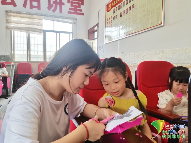 图为志愿者指导孩子剪纸。中国青年网通讯员 徐珍 供图
