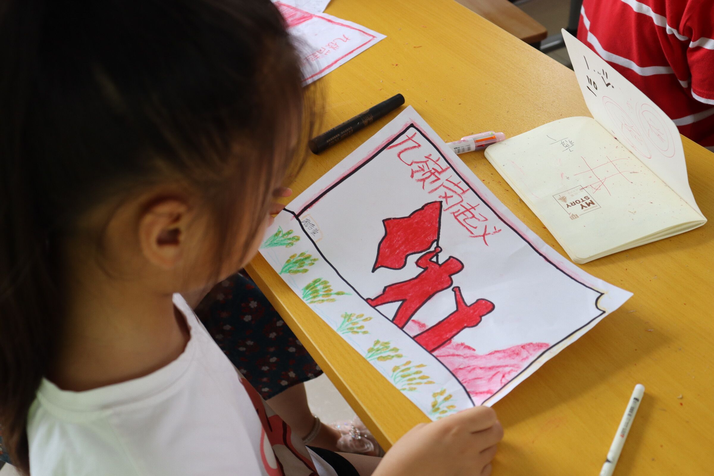 图为小朋友在学习“红色九岭岗”主题党史教育课后,用画作的形式表达自己对革命先辈的敬仰。中国青年网通讯员 蒋怡菲 供图