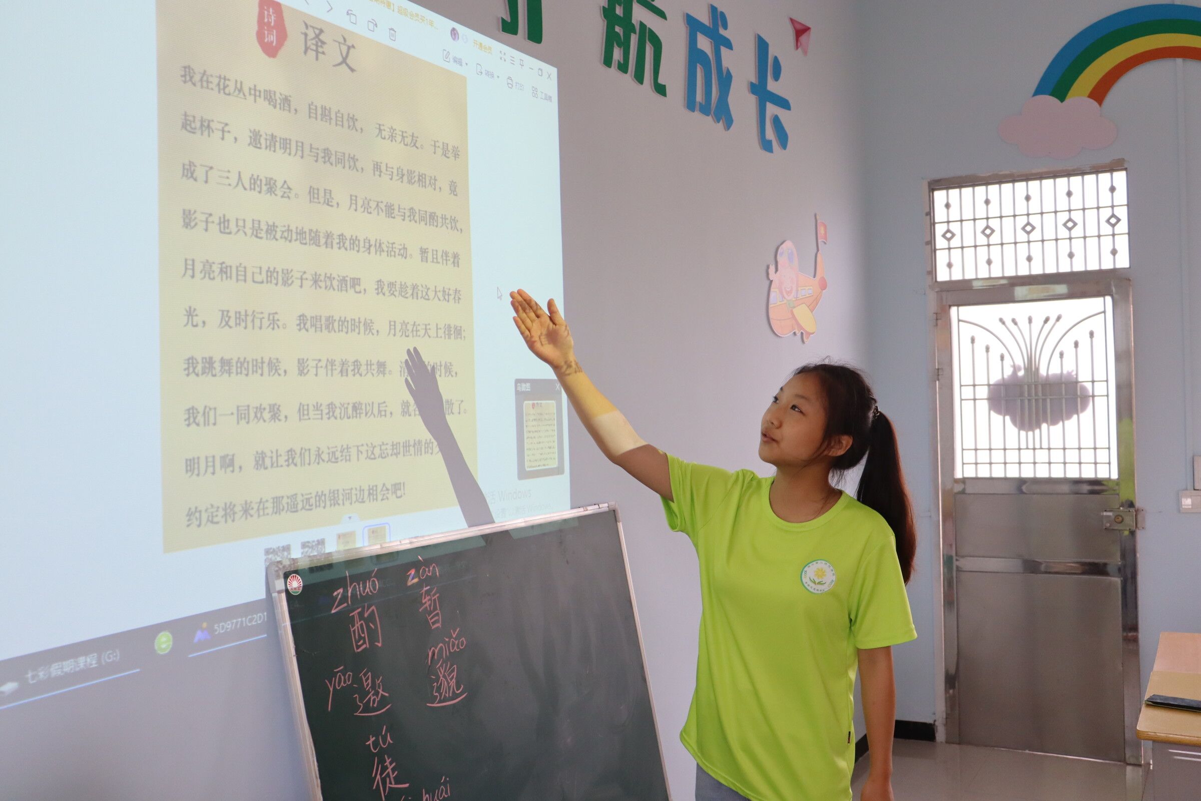 图为志愿者在讲解古诗译文,让小朋友们更好地了解其意境与含义,真正做到学有所获。中国青年网通讯员 蒋怡菲 供图