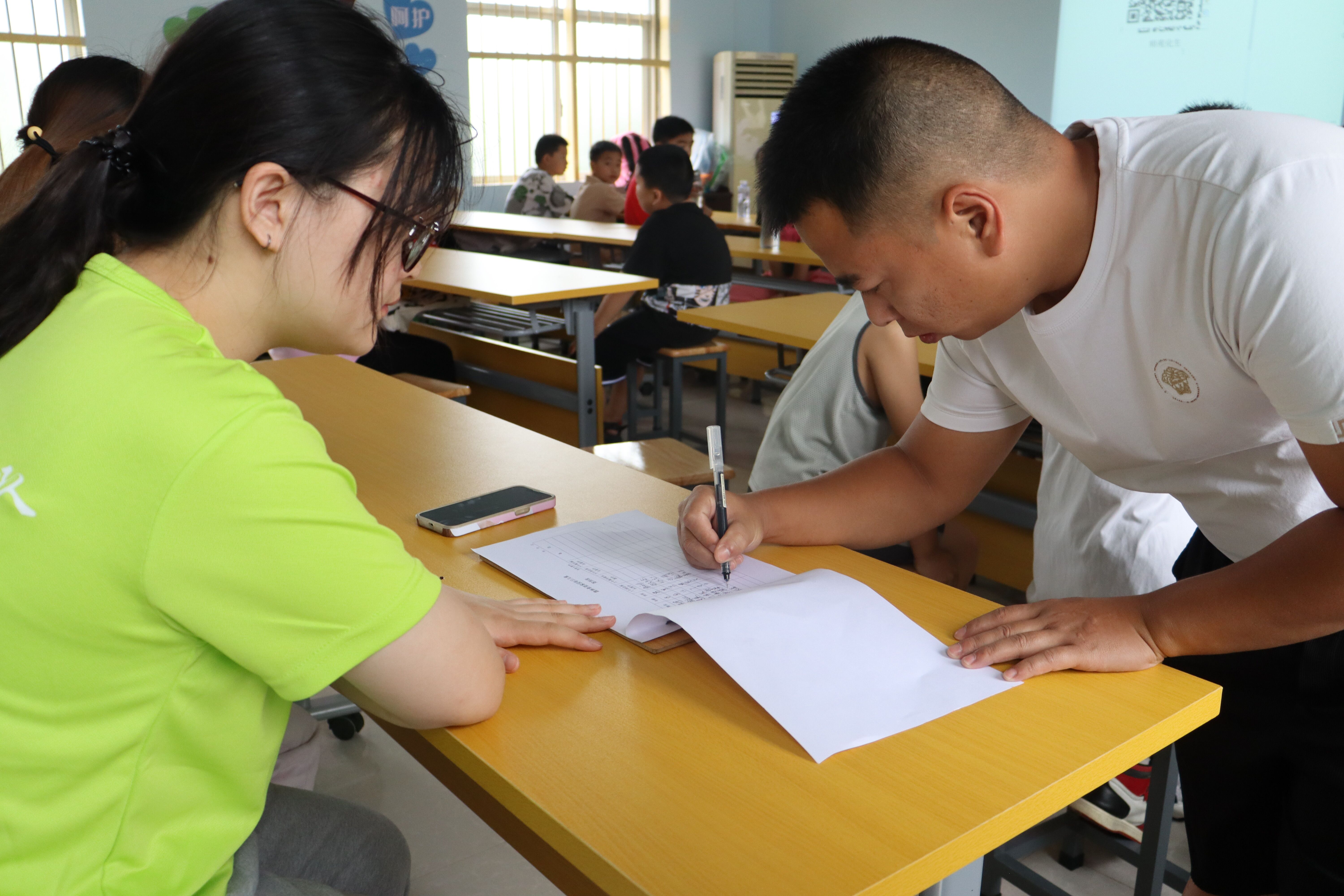 图为家长送孩子参加青葵公益课堂进行签到,确保学生安全。中国青年网通讯员 蒋怡菲 供图