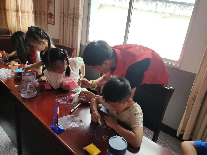 中国青年网宜都7月22日电(通讯员 朱可心)为丰富响水洞村学生动手能力,提升学生们的学习积极性,2023年7月19日,湖北第二师范学院“快乐童心支教计划梓玮志愿服务队”宜都市五眼泉镇响水洞村分队4名成员在当地“希望家园”开展趣味课程——手工绘扇,同学们跟随支教服务队队员在绘画、剪贴之中感受手工的快乐和艺术的魅力。