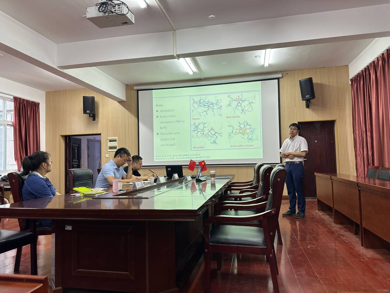 本网讯(通讯员 张雅琼)5月22日下午,华中科技大学廖荣臻教授应邀来我校化学与生命科学学院进行学术交流,在化生学院会议室为我校师生带来主题为《铁催化氧化还原反应机制理论研究》的专题报告。