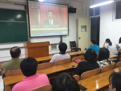 2016年7月1日上午,管理学院组织党员干部和学生代表,在10号楼2306教室观看“中国共产党成立95周年庆祝大会”现场直播。