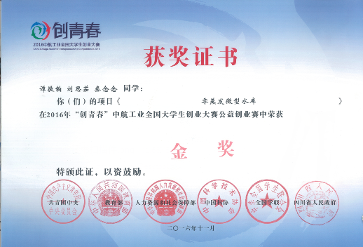 2016年“创青春”全国大学生创业大赛金奖
