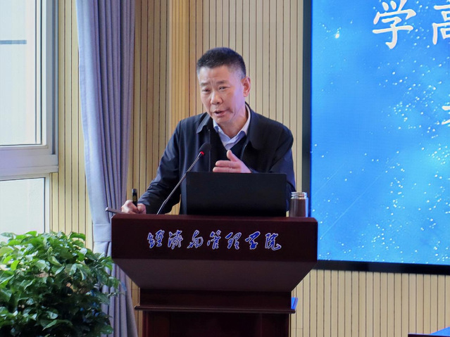 随后,陈池波院长以《前进中的经济与管理学院-思考与建议》为题进行了专题报告。陈池波从“工作三个多月做了什么”、“学院发展的基础和困难是什么”、“‘十四五’后三年学院如何发展”等三个方面全面总结了学院前期取得的成绩,并客观分析了当前学院发展形势,部署了新学期学院的工作重点。陈池波指出,学院目前应把握“四大发展理念”,促进经济管理融合发展、教学科研互动发展、产学研用特色发展、资源信息共享发展;抓住“四大建设任务”,做好专业建设、团队建设、平台建设、制度建设。