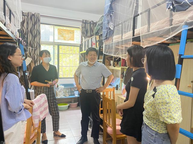 2022年我校秋季开学正值中秋佳节,为进一步了解我校联合培养研究生返校及2022级研究生新生报到情况,缓解同学们思乡之情。9月12日下,我校研究生处副处长周静、计算机学院党委书记陈慧敏、副院长陈宇、教育科学学院副院长张炜一行深入研究生寝室进行中秋节慰问活动。