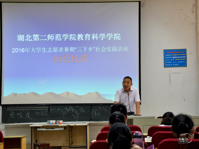 (本网讯 刘铭铭 刘宗州)2016年6月15中午12点30分,在旧图书馆报告厅3开展了"三下乡"活动的启动仪式。此次活动由教科学学院分团委举办,并邀请了教育科学学院的林书记,李小兵和代黎明老师参加。