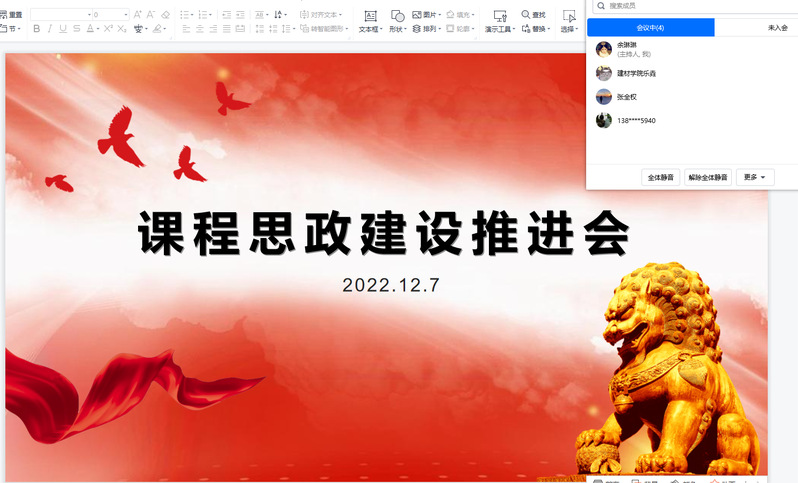 2022年12月7日下午,建材学院课程思政工作推进会顺利举办,活动以线上交流方式进行。课程思政教学研究中心主要人员出席会议。会议由余琳琳主持。余琳琳首先对与会人员表示欢迎,她希望与会老师能将专业知识中蕴含的思政元素进一步融入进教学案例之中,通过课程思政中心这一平台和案例集出版这一活动固化案例设计成果,让与会老师的教学投入能被更多人看见。