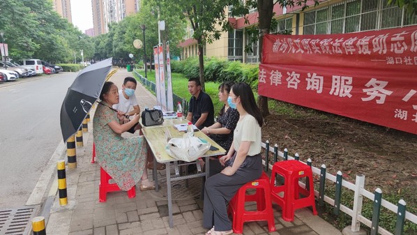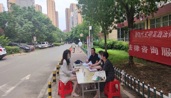 本网讯(通讯员 刘文俊)6月24日下午,我校党员下沉社区“法律咨询和宣传服务小分队”在湖口社区开展主题为“新时代文明实践”的法律援助志愿服务活动。