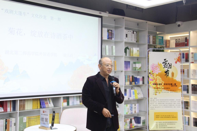 本网讯(通讯员 王培喜)10月14日晚,“戏剧大篷车”文化沙龙第一期讲座在学校倍阅书店举办,我校外国语学院日语系副教授徐元科担任主讲。