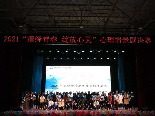 本网讯(融媒体见习记者 王文骏 王瑞琪 刘丹阳)11月25日晚,“演绎青春,绽放心灵”2021年心理情景剧决赛暨颁奖典礼在湖北第二师范学院大礼堂举行。本次大赛由学工部大学生心理健康教育中心主办,校大学生心理发展联合会承办,各学院心理健康发展协会协办。大学生心理健康中心全体教师、管理学院心理辅导站站长周慧东、文学院心理辅导站站长李晓峰、马克思主义学院心理辅导站站长樊勇及各学院心理情景剧指导老师出席此次活动。