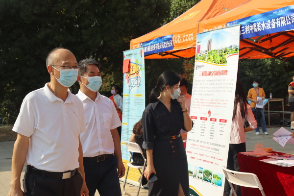 本网讯(融媒体记者 余芯雨)9月30日,由我校招生就业处主办的“相约周五”系列之“数你精彩,一‘职’有你”线下双选会(第十五期)在图书馆前广场成功举办。此次活动中,共有60余家本省企业参与,面对我校2023级应届毕业生和往届未就业毕业生展开校内线下招聘活动。副校长黄颂,招生就业处处长刘儒国、副处长蒋谦,数学与经济学院党委书记林志红、党委副书记严国涛参与此次活动并就毕业生就业问题展开视察讨论工作。