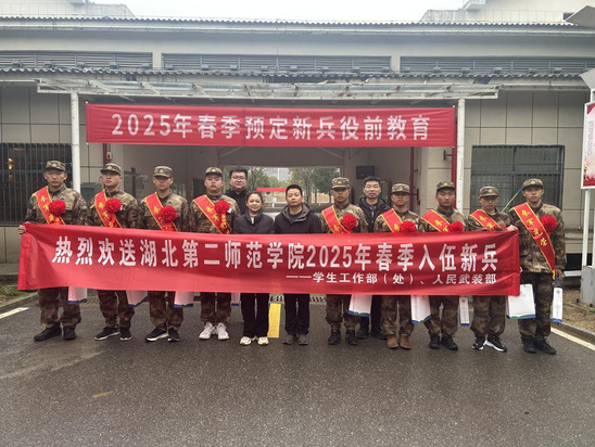 本网讯(通讯员 王骏)3月14日上午,在武汉市某国防教育基地多功能厅,我校5个学院的9名大学生身姿挺拔、整齐列队,正在参加役前教育,即将奔赴军营开启军旅生涯。学生工作部(处)、人民武装部部长文敏,副部长刘兴一行专程前来欢送慰问。