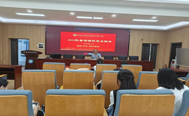 本网讯(通讯员 梅浩泰)7月4日,数学与统计学院在十号楼二楼会议室召开暑假留校安全班会,数学与统计学院党委副书记严国涛、副院长吴新林、辅导员施凡出席此次会议,暑假留校学生参加此次会议。