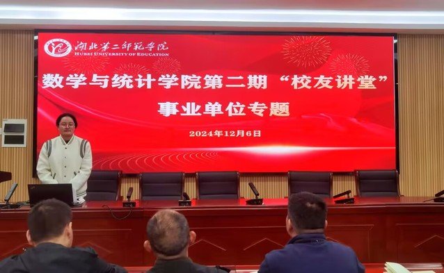 本网讯(通讯员 蔡睿琪)为帮助广大学子更好规划大学生涯,了解事业单位招聘,提高面试技能,12月6日,数学与统计学院在十号楼二楼会议室开展第二期“校友讲堂”事业单位专题分享活动。数学与统计学院党委副书记严国涛,学工办主任余江涛,辅导员施凡,2024届毕业生余常乐,部分学生代表参与此次活动。