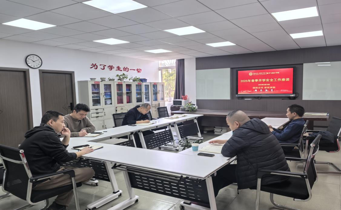 本网讯(通讯员 秦媛媛)为切实加强校园春季安全保障工作,营造安全稳定的校园环境,3月14日下午,保卫处副处长熊寅墨,保卫处内保科科长高阳一行赴数学与统计学院走访调研。数学与统计学院党委副书记严国涛,学工办主任余江涛,辅导员施凡参与交流研讨。