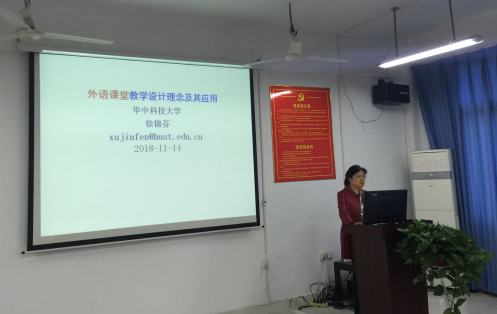 (通讯员喻侯林叶妙醒)2018年11月14日下午,应外国语学院邀请,华中科技大学教授、博士生导师徐锦芬莅临外国语学院,为师生们作题为“外语课堂教学设计理念及其应用”的专题讲座。讲座由外国语学院院长汪燕华教授主持,学院部分教师和学生聆听了徐锦芬教授的讲座。