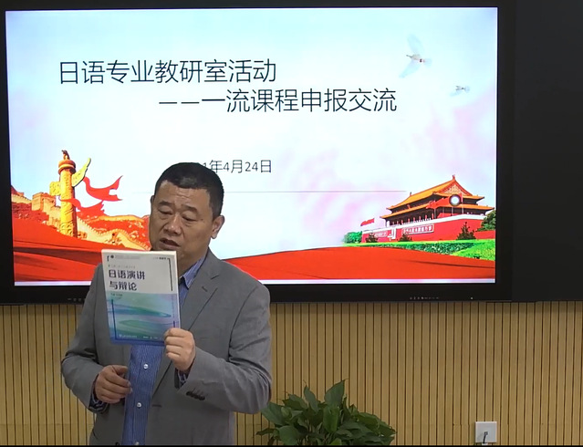 通讯员:殷志诚2021年4月24日第七届全国日语系主任会议召开,根据本次大会精神,日语系上午9时,在4209教室,开展了以一流本科课程建设为主题的教研活动。此外本次活动主要还就21版人才培养方案和如何开展横向课题等内容展开了讨论交流