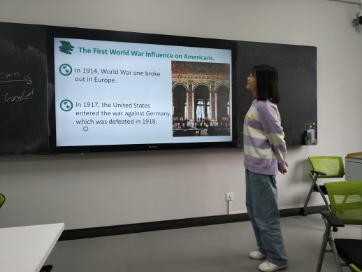 同学们查阅资料,了解了“美国垮掉一代”的历史背景,思考中西方的文化差异,探讨当下中国年轻人的历史责任。同学们在讨论中,提问反思,加深了对美国历史的了解,从客观的历史背景理解美国参战的深刻经济原因和政治原因,再联系时事,令大家更深刻理解了自己的历史责任,理解了中国道路和中国制度的历史必然性,强化了对中国文化和制度的认知和认同。