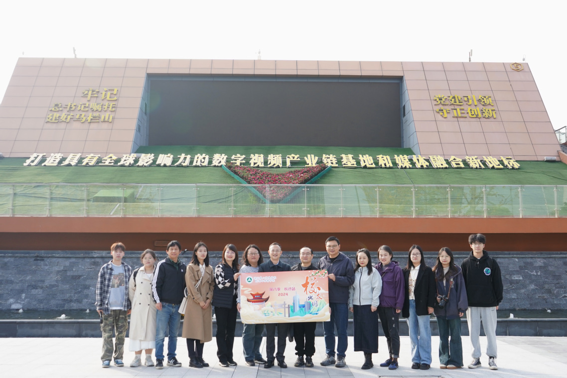 在新闻学2006届校友徐神、2018届校友周姗姗的带领下,徐晓一行参观中国v谷马栏山(长沙)视频文创园,从多重角度了解了马栏山的创新数字化、智能化的发展情况。随后一同前往了湖南省广播电视台,从高校走进企业,从教室走进演播厅,回顾了湖南广播电视台的发展历程,近距离感受了“台里主播直播带货”的广播台发展新形势,学习了“把党的声音传到田间地头”传媒人精神。